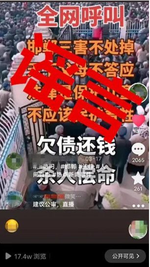 近日,北京警方查处一起网络谣言案件。一网民为博取关注,在热门视频平台多次转发“邯郸肥乡事件”的相关谣言被行政拘留。