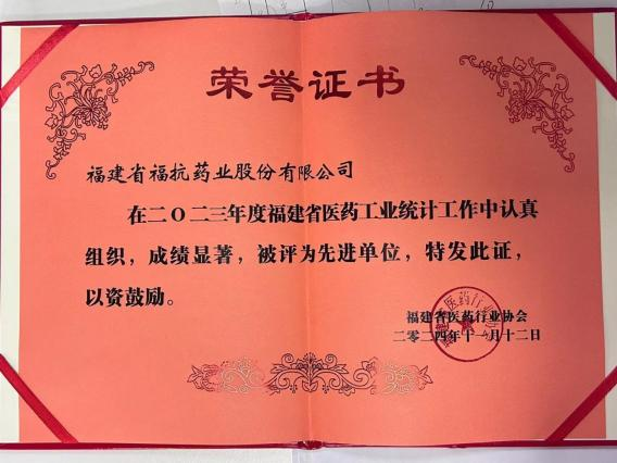 2024年11月12日,福建省医药工业协会在福州召开全省医药工业统计工作年会暨统计工作人员培训会,会议通报2023年全省医药工业统计工作情况,布置2024年定期报表工作,并对2023年度福建省医药工业统计工作先进单位及先进个人进行表彰。我司获评省医药工业统计工作先进单位,付诗颖获评省医药工业统计工作先进个人。